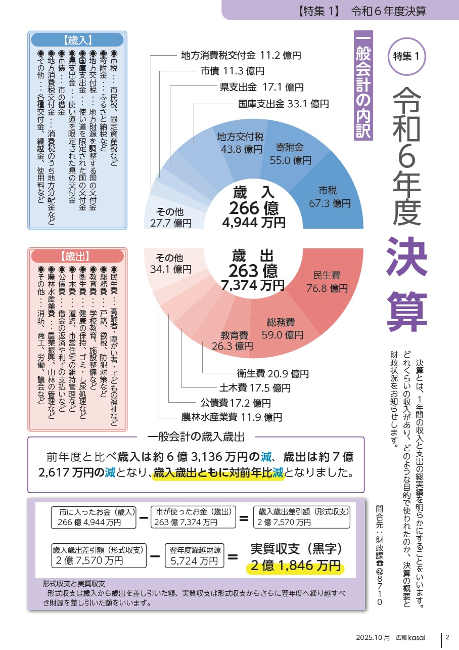 どれくらいの収入があり、どのような目的で使われたのか、決算の概要と財政状況をお知らせします。