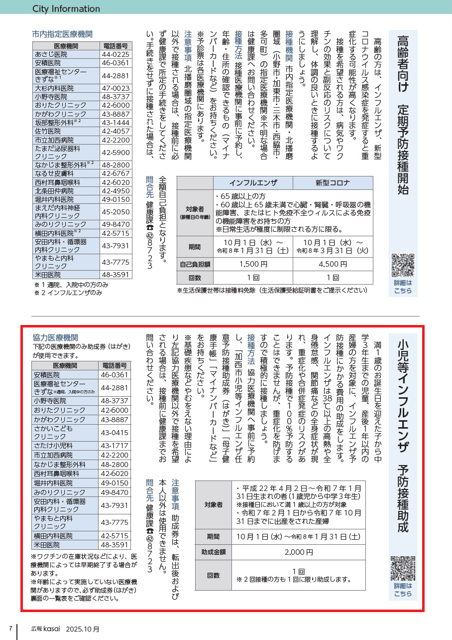 接種方法:協力医療機関へ事前に予約し、「加西市小児等インフルエンザ任意予防接種助成券(はがき)」「母子健康手帳」「マイナンバーカードなど」をお持ちください。