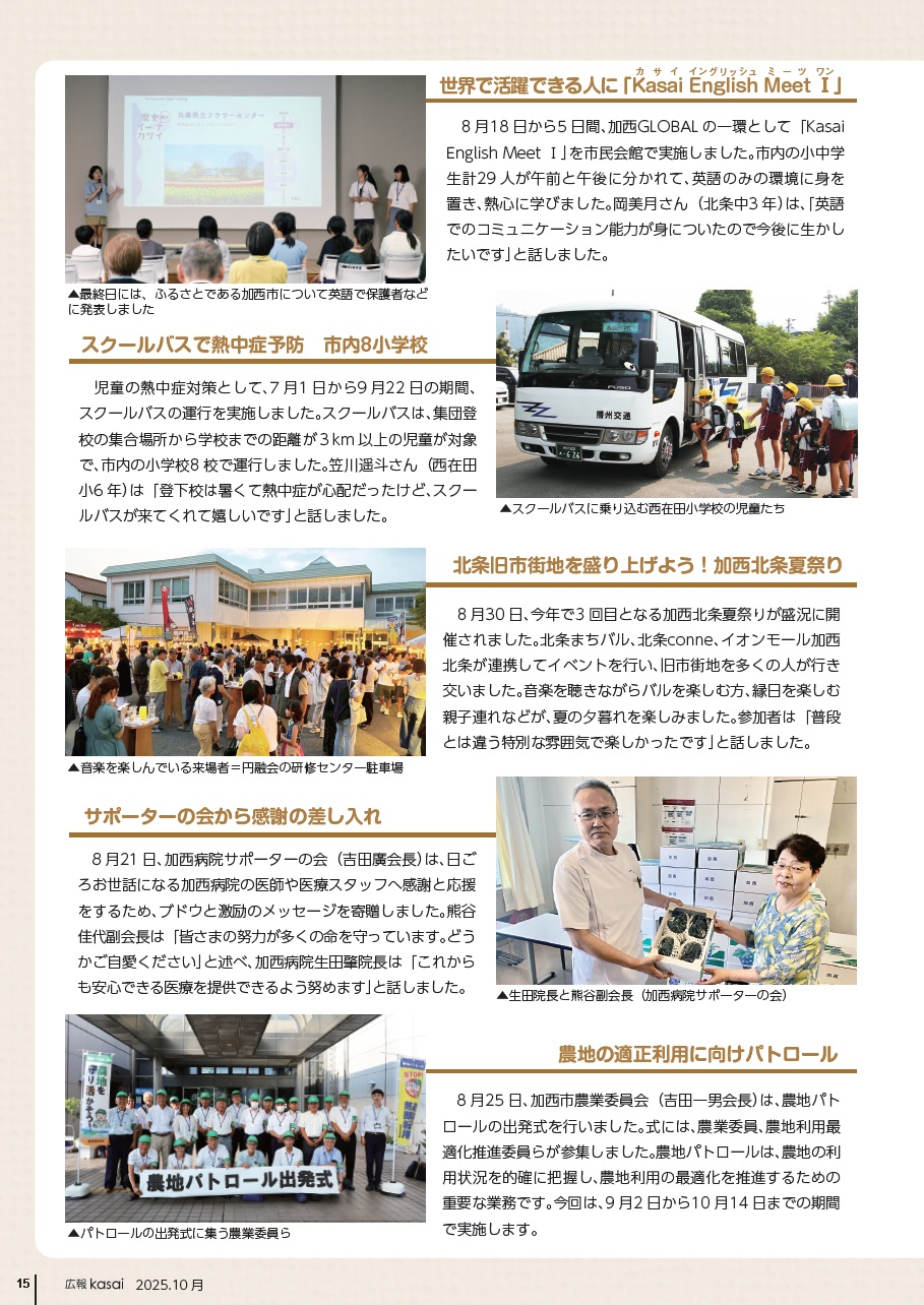 8月25日、加西市農業委員会(吉田一男会長)は、農地パトロールの出発式を行いました。式には、農業委員、農地利用最適化推進委員らが参集しました。農地パトロールは、農地の利用状況を的確に把握し、農地利用の最適化を推進するための重要な業務です。今回は、9月2日から10月14日までの期間で実施します。