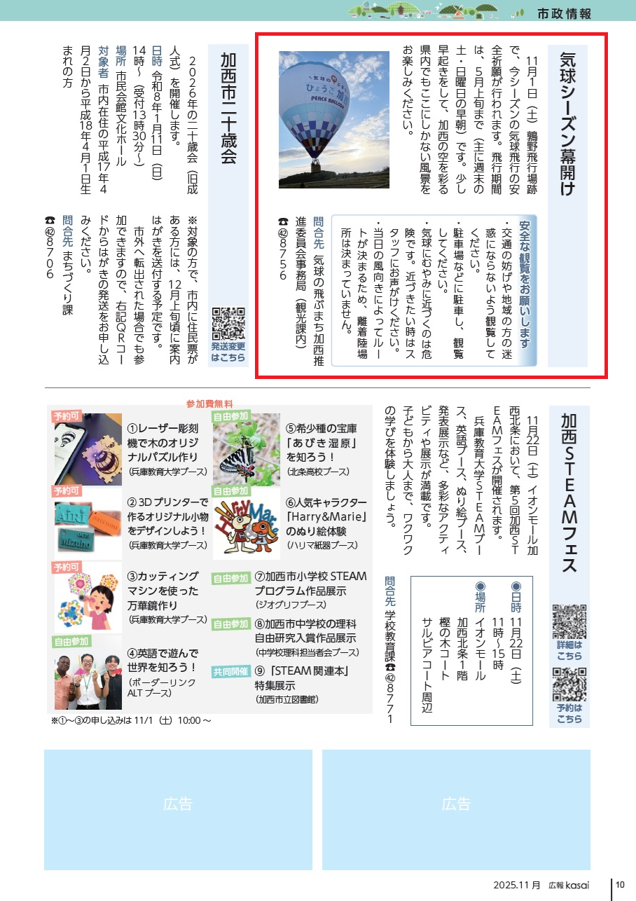問合先:気球の飛ぶまち加西推進委員会事務局(観光課内)