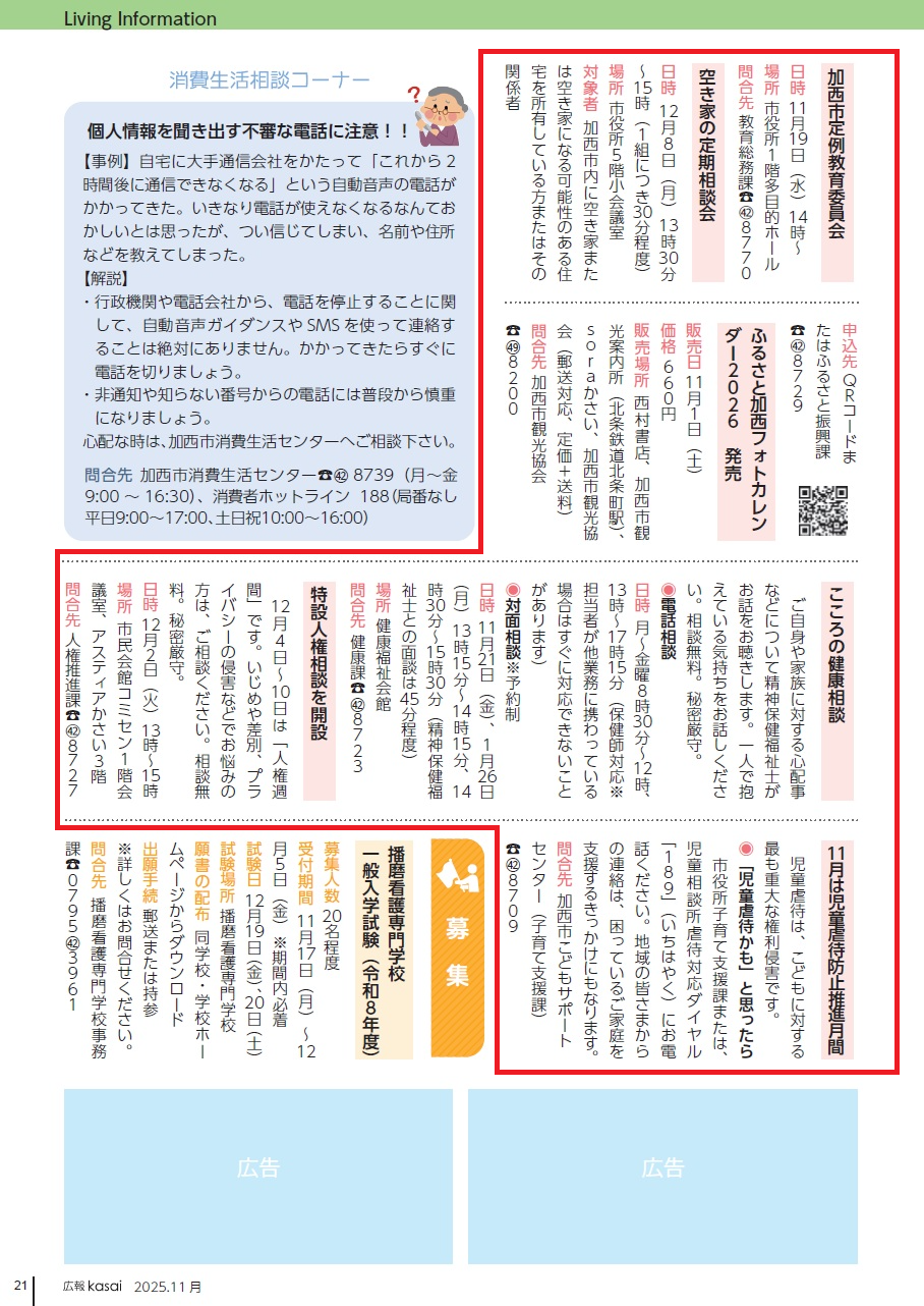 問合先:加西市こどもサポートセンター(子育て支援課)