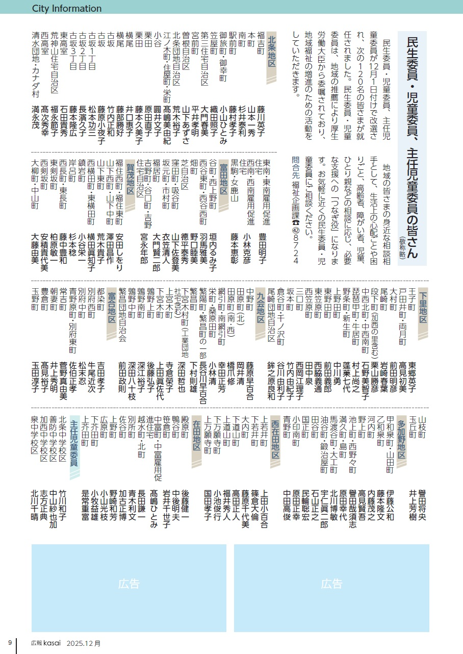 民生委員・児童委員、主任児童委員が12月1日付けで改選され、次の120名の皆さまが就任されました。民生委員・児童委員は、地域の推薦により厚生労働大臣から委嘱されており、地域福祉の増進のための活動をしていただきます。