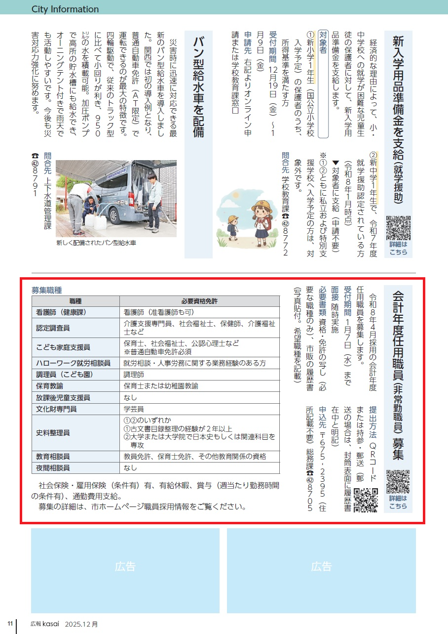募集の詳細は、市ホームページ職員採用情報をご覧ください。