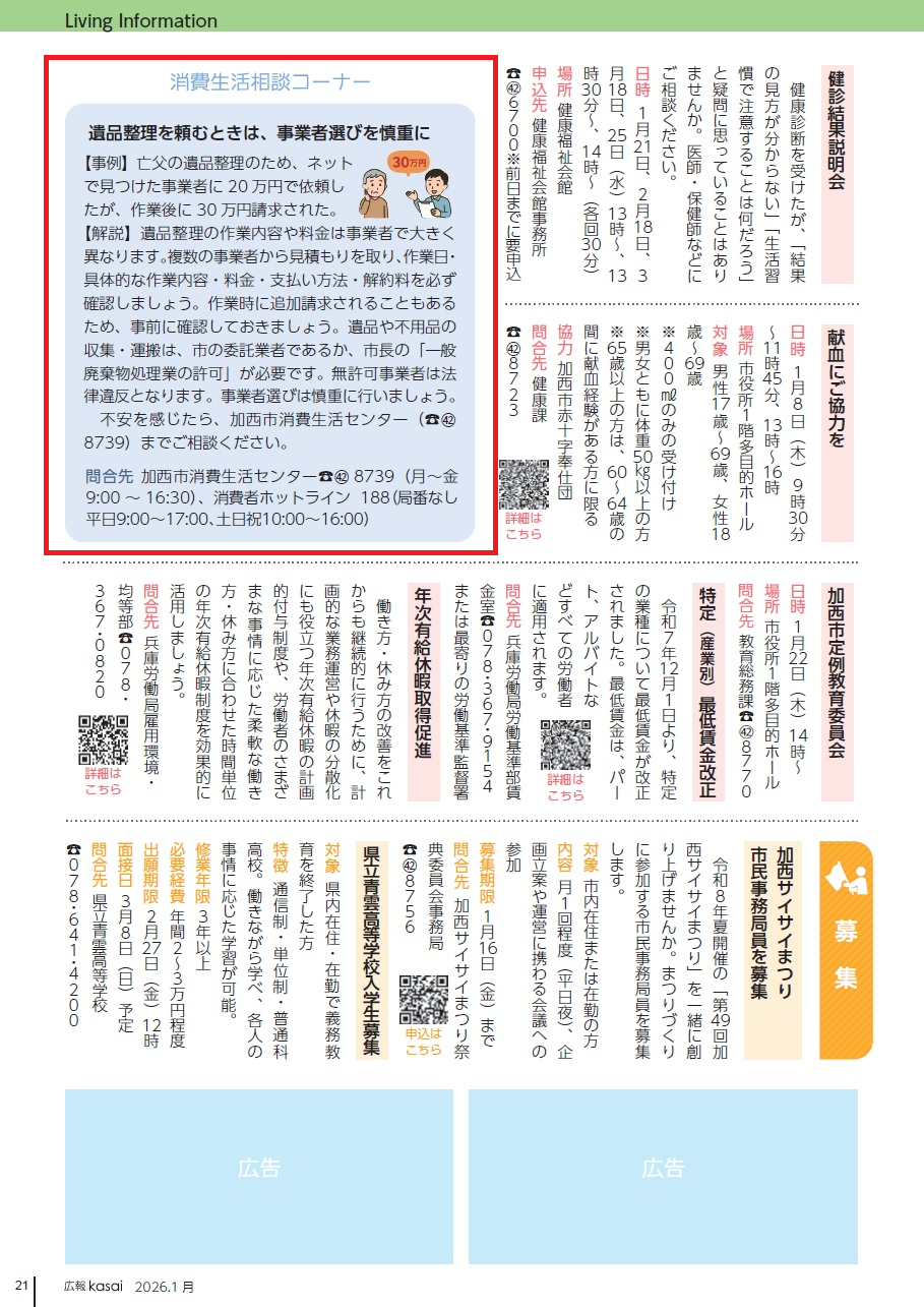 不安を感じたら、加西市消費生活センターまでご相談ください。
