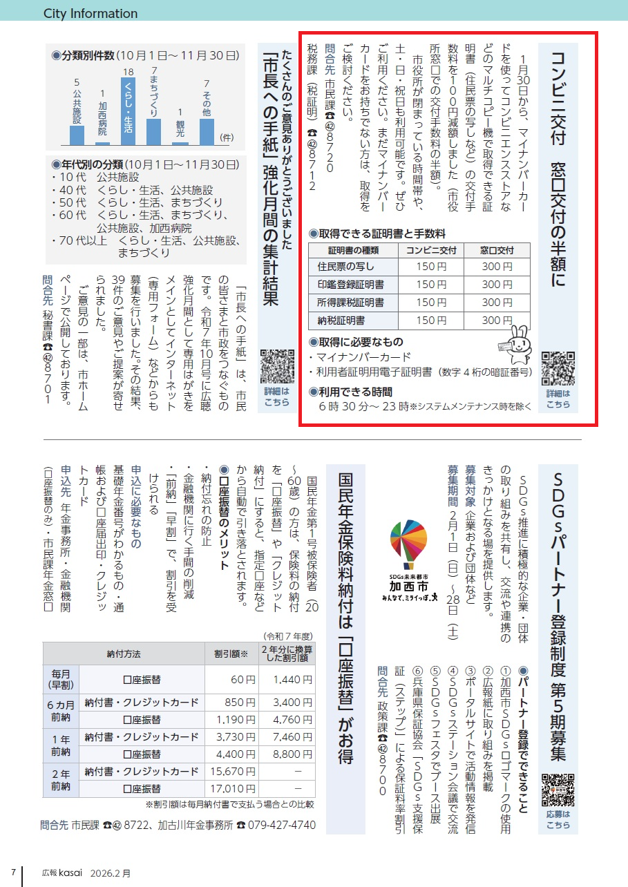 市役所が閉まっている時間帯や、土・日・祝日も利用可能です。ぜひご利用ください。まだマイナンバーカードをお持ちでない方は、取得をご検討ください。