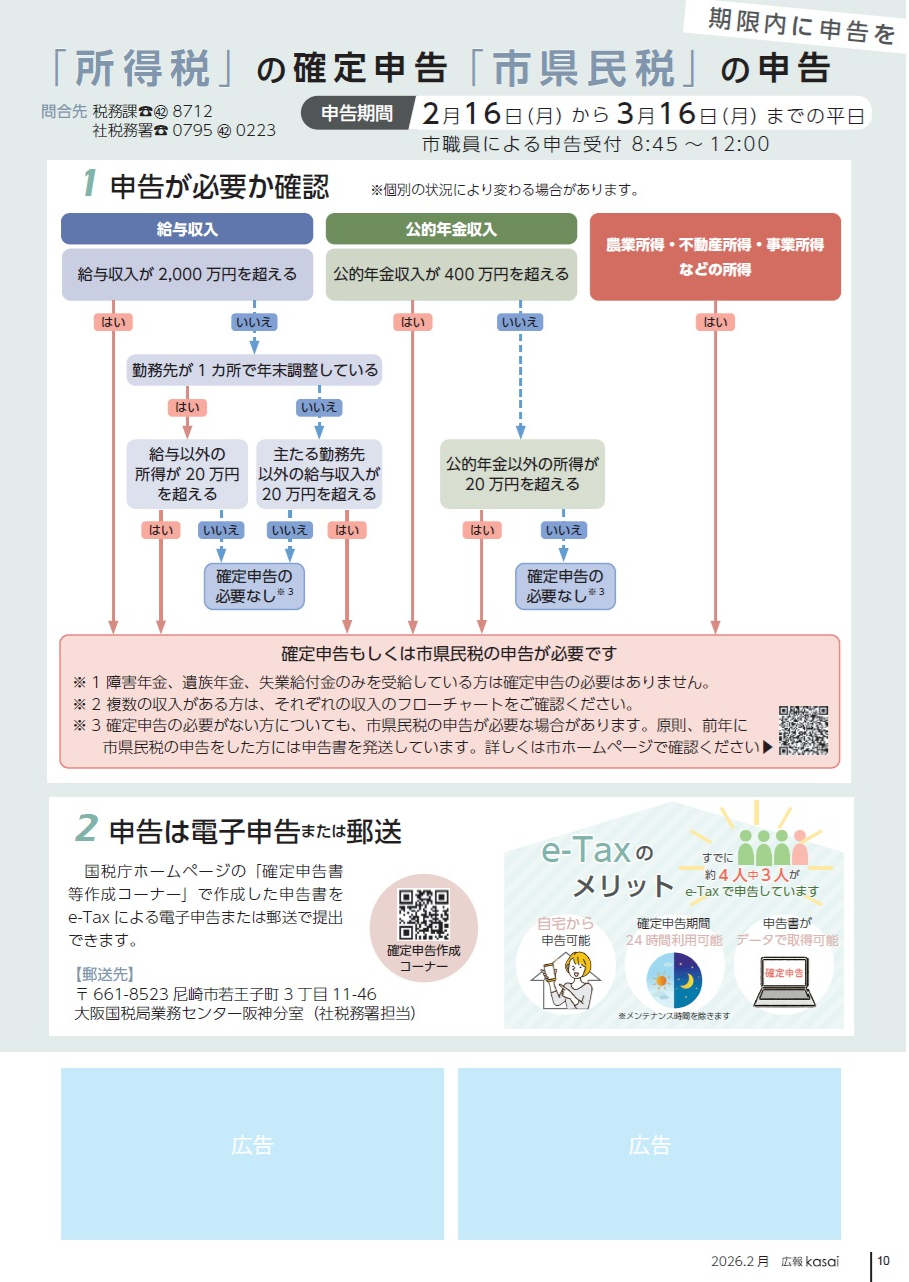 ※3確定申告の必要がない方についても、市県民税の申告が必要な場合があります。原則、前年に市県民税の申告をした方には申告書を発送しています。詳しくは市ホームページで確認ください