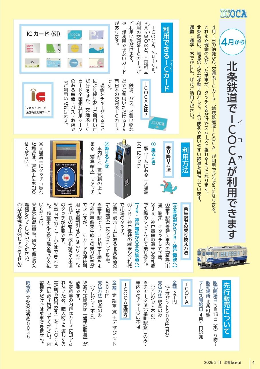 4月1日の始発から、交通系ICカード「地域鉄道版ICOCA」が利用できるようになります。