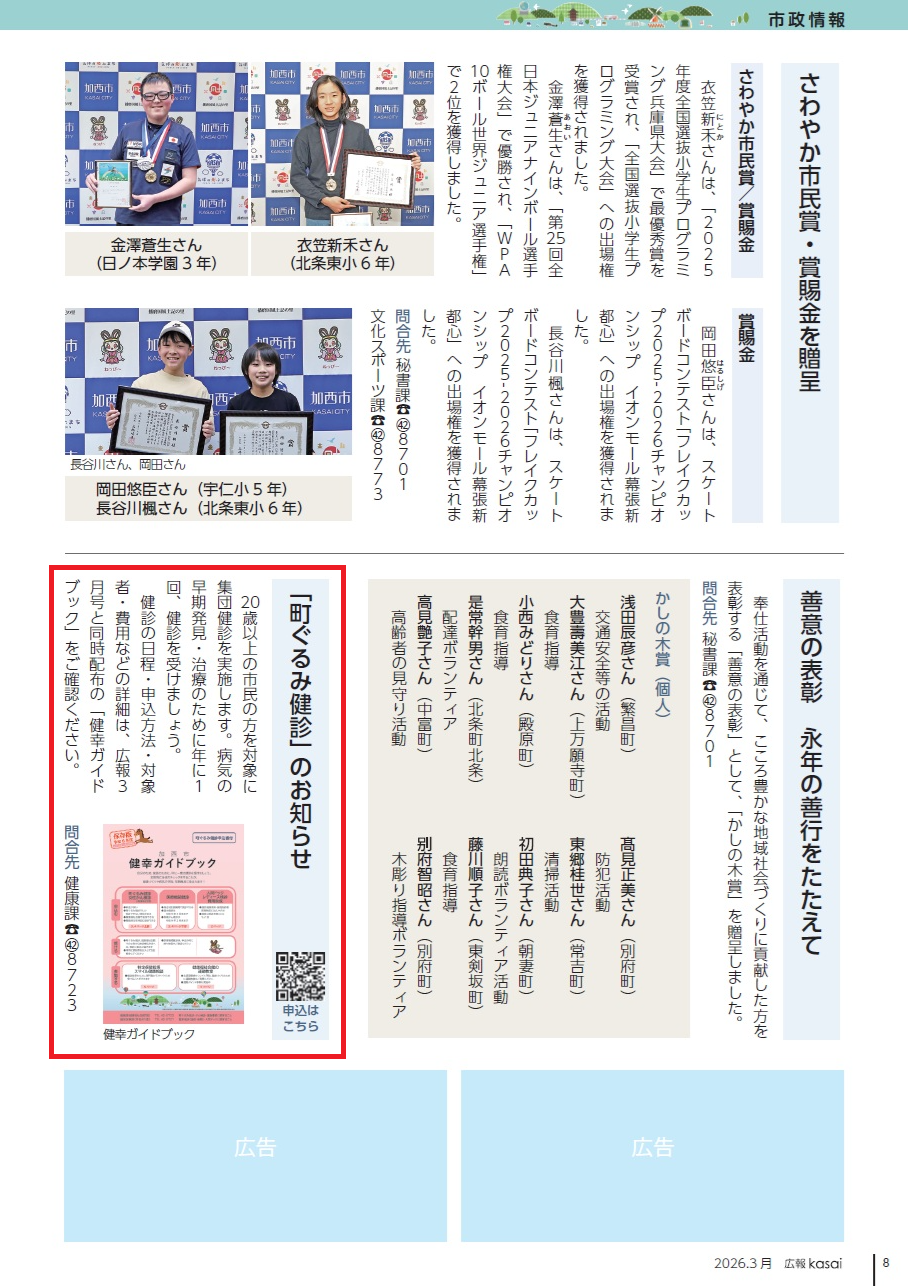 健診の日程・申込方法・対象者・費用などの詳細は、広報3月号と同時配布の「健幸ガイドブック」をご確認ください。