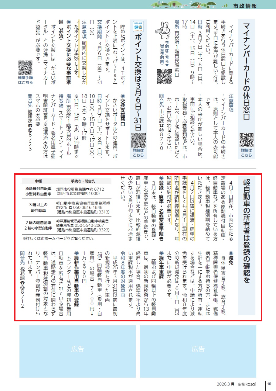 3月末は、軽自動車の登録・廃車・名義変更などの手続きで、窓口が混雑します。比較的混雑の少ない3月中旬までにお済ませください。
