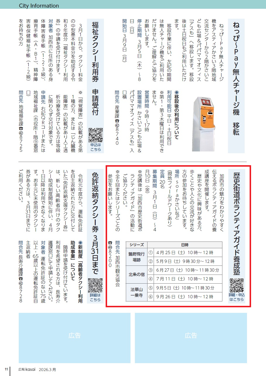 ※受講後は「加西市歴史街道ボランティアガイド」の活動にご協力ください。